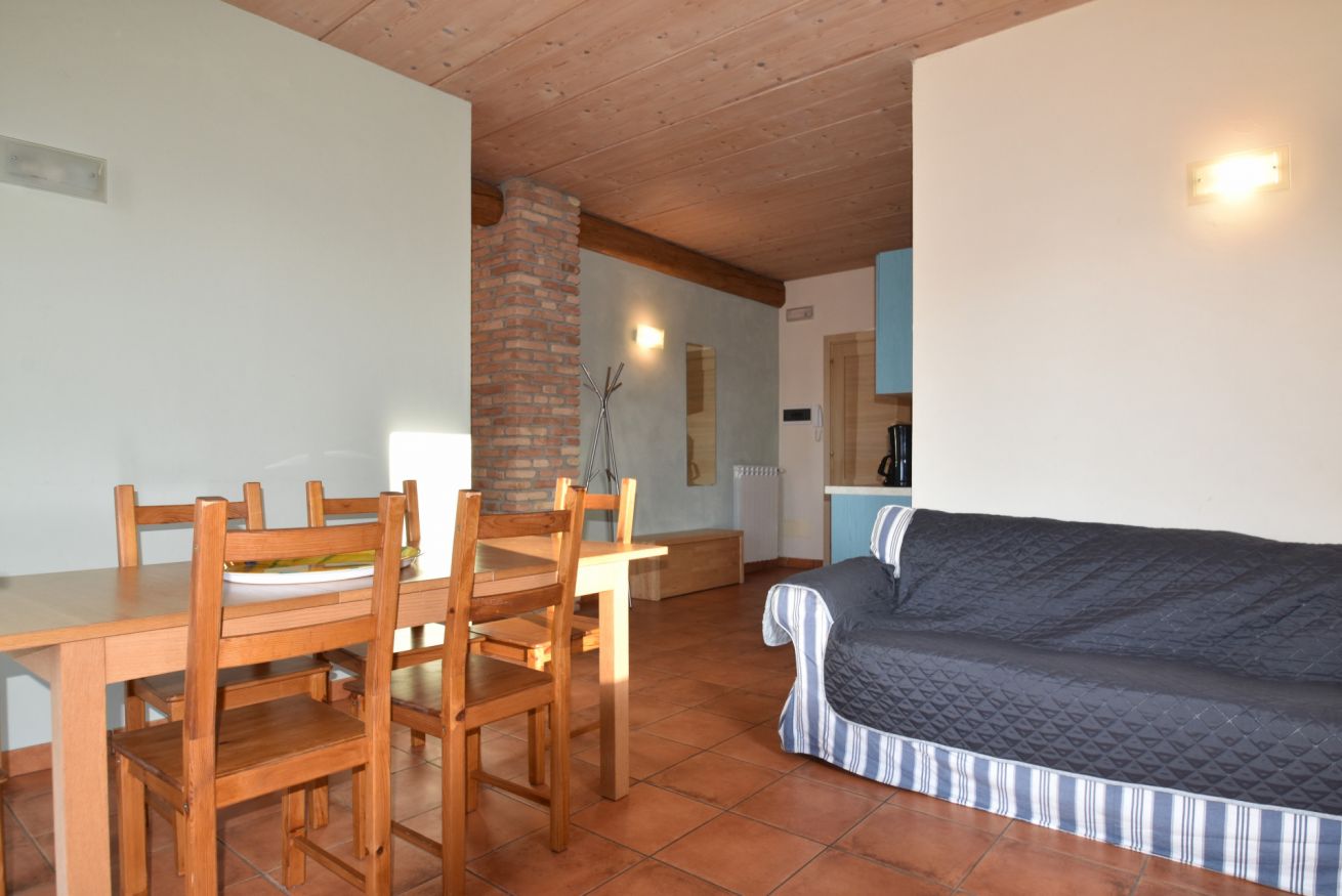 L’appartamento è composto da due camere da letto, un luminoso soggiorno con angolo cottura, un bagno moderno e un balcone che offre una vista panoramica mozzafiato sulle montagne.