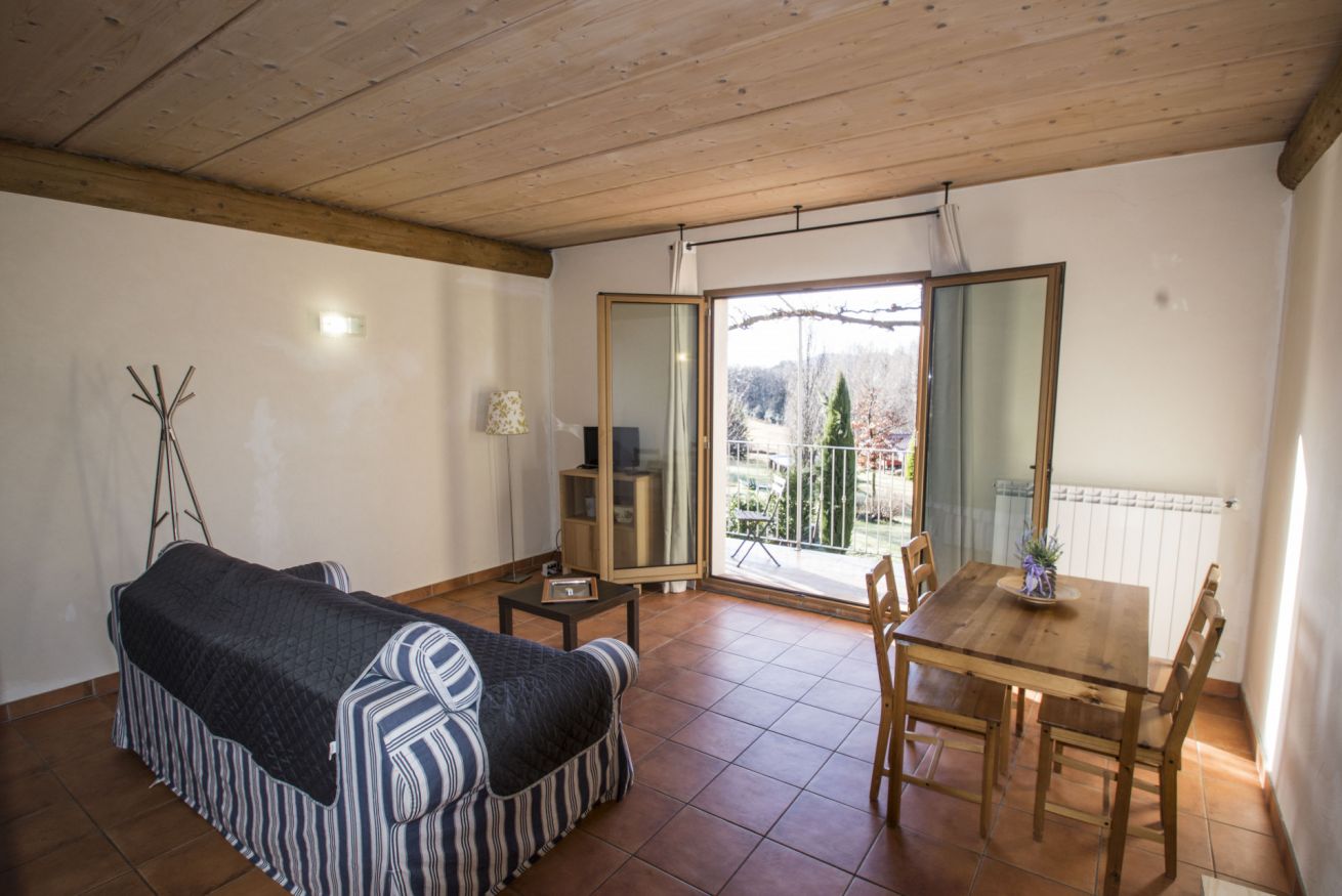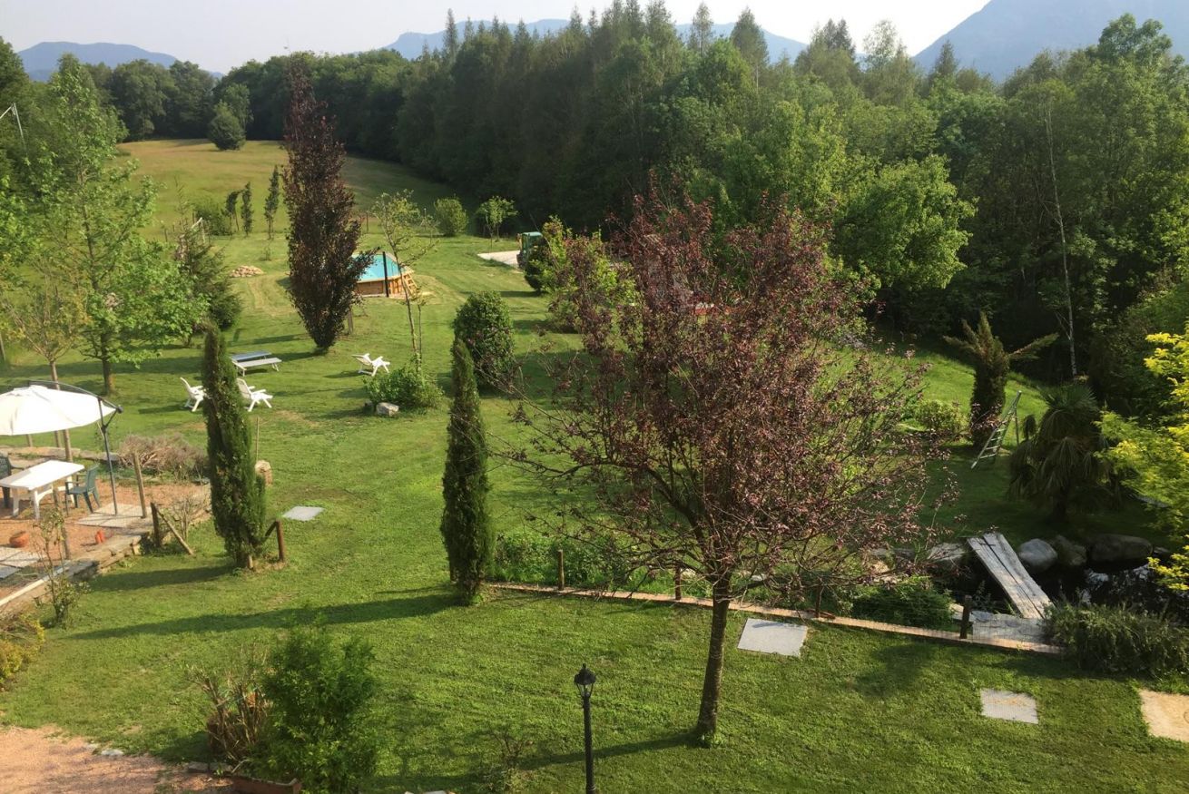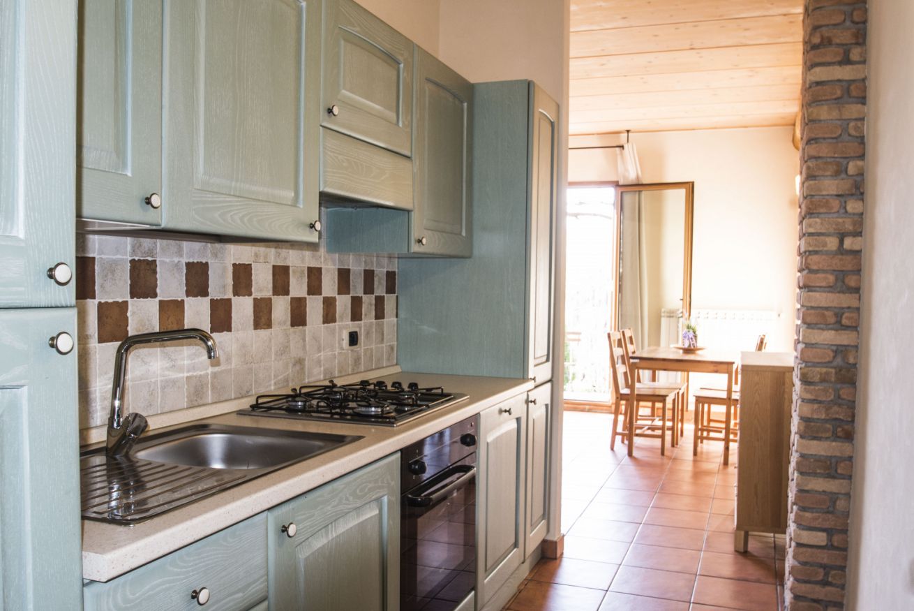 All’esterno, gli ospiti possono godere di una piacevole piscina panoramica, condivisa solo con gli altri due appartamenti, e di una grande area verde attrezzata: l’ideale per rilassarsi al sole, leggere all’ombra degli alberi o gustare colazioni e cene all’aperto, immersi nel silenzio e nella natura.